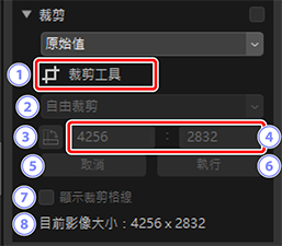 - 照片的目前大小。在裁剪照片後,該值會更新以反映新的尺寸。