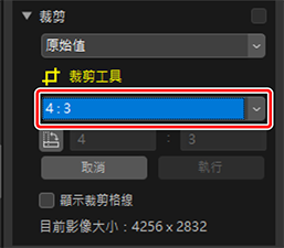 畫面比例可在調整完裁剪框的大小及位置之後進行更改。