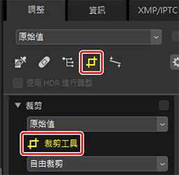 )裁剪工具。也可以按一下調整面板頂部工具的圖示。