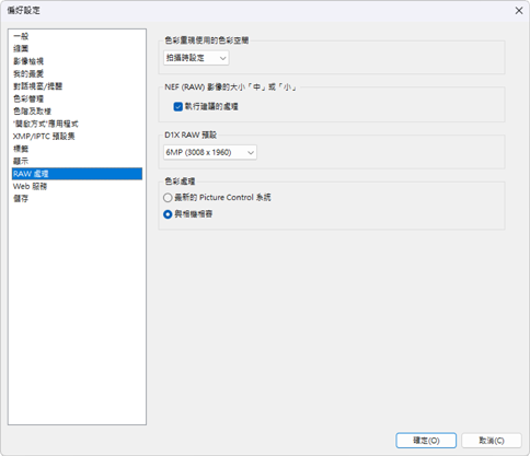 調整 RAW 照片處理的設定。