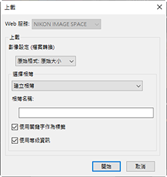 - 以所選設定將照片上載至 NIKON IMAGE SPACE。