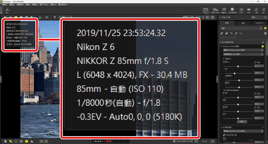 )該工具可在檢視器中顯示相機名稱、記錄日期和其他影像資訊。