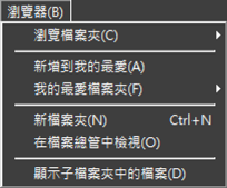 - 在瀏覽器面板中將目前檔案夾新增至 [我的最愛](0 瀏覽器面板)。
