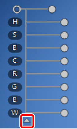 - [全部]:顯示 [色調]([H])、[飽和度]([S])、[亮度]([B])、[對比]([C])、[紅色]([R])、[綠色]([G])、[藍色]([B])和 [暖度]([W])的滑桿。