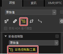 )彩色控制點工具也可以按一下調整面板頂部工具的圖示。也可以按一下調整面板頂部工具的圖示。