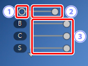 )。 - 預設調整滑桿為 [B] (亮度)、[C](對比度)和 [S](飽和度)。