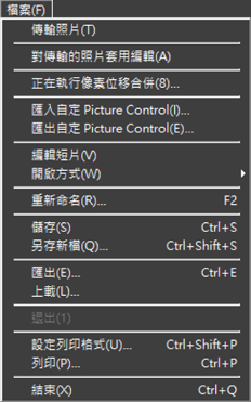 - 將儲存在 NX Studio 上的自定 Picture Control 匯出為檔案(0 匯出自定 Picture Control 檔案)。