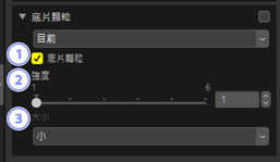 - 從 [小]、[中] 和 [大] 中選擇顆粒大小。尺寸越小,紋理越精細;尺寸越大,顆粒紋理越突出。