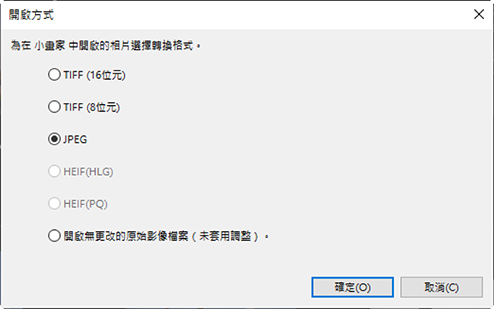 - 若所選應用程式不支援所選格式,則照片將不會開啟。