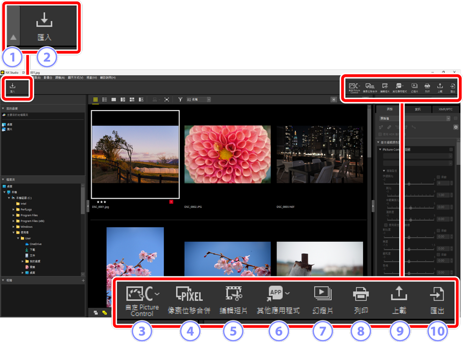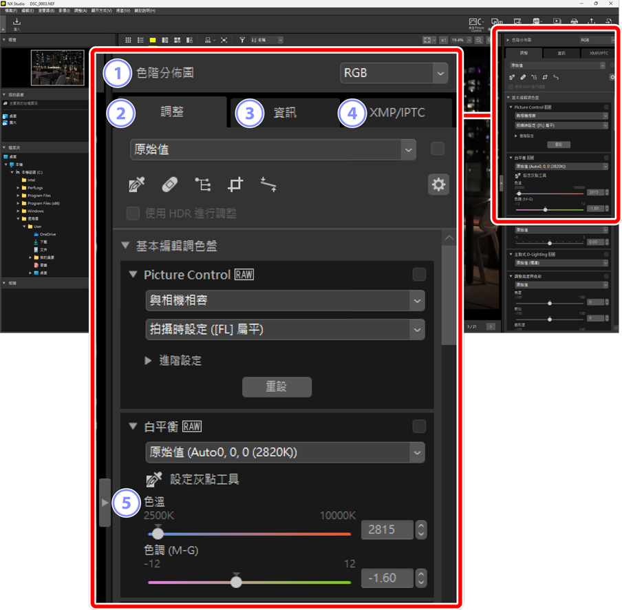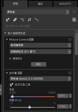 - [開啟無更改的原始影像檔案(未套用調整)]:檔案將以原始格式開啟。不會套用在 NX Studio 中進行的增強。