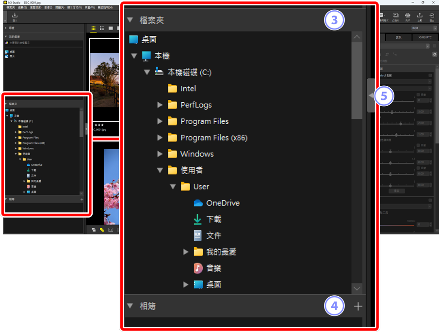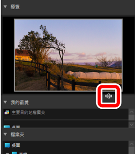 拖曳 [導覽]、[我的最愛]、[檔案夾] 和 [相簿] 副面板,以調整它們的大小。