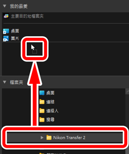 要將檔案夾添加至我的最愛,請從 [檔案夾] 列表中將檔案夾拖曳進來。