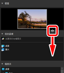 按鍵,以顯示或隱藏 [導覽]、[我的最愛]、[檔案夾] 和 [相簿] 副面板。