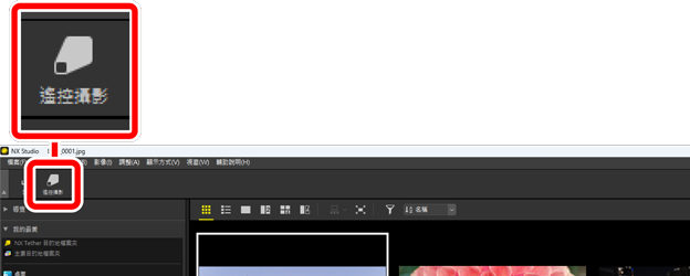 若安裝,可在工具列中按一下 [遙控攝影] 來啟動 NX Tether。