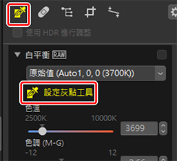 )設定灰點。也可以按一下調整面板頂部工具的圖示。