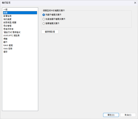 選擇子檔案夾是否以及按照什麼順序出現於縮圖格線、縮圖列表和影片顯示中。