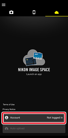 Tap [NIKON IMAGE SPACE Log in].