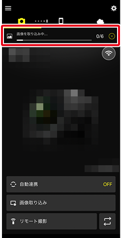 タブの[自動連携]>[連携モード]を[フォアグラウンド]に設定している場合は、カメラが画像を転送できる状態になると自動で転送を再開します。