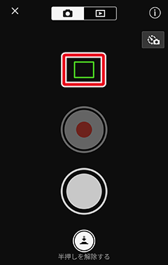 をタップしてシャッターボタン半押しの状態を解除し、もう一度