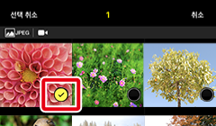 아이콘으로 변경됩니다. 선택을 취소하려면 다시 누릅니다. 현재 선택된 총 화상 수가 디스플레이 위쪽에 표시됩니다.