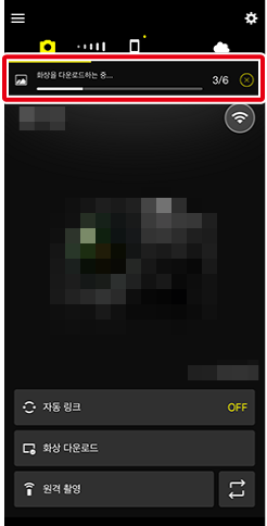 탭의 [자동 링크] > [링크 모드]에 [백그라운드]를 선택하면 카메라에서 진행 중인 작업이 종료되었을 때 다운로드를 다시 시작할 수 있습니다.