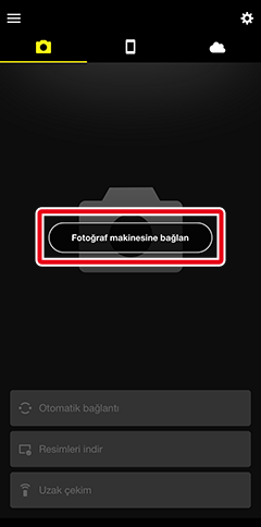 sekmesindeki [Fotoğraf makinesine bağlan] öğesine dokunun ve sonraki adıma ilerleyin.