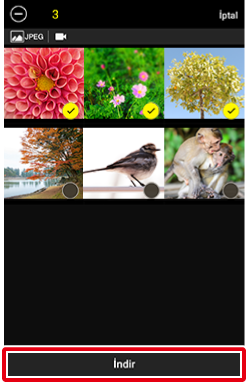 simgelerine dokunarak seçebilir veya resimlerden seçimleri kaldırabilirsiniz.İndirmek istediğiniz resimlerin tamamını seçtikten sonra, [İndir] öğesine dokunun.