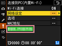 建立连接后,照相机将以绿色显示网络配置文件名称(默认设定下为网络SSID)。