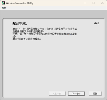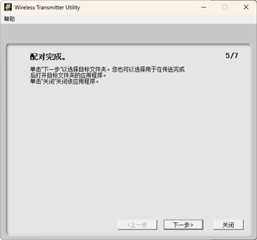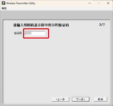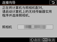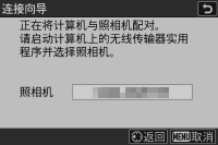 按照屏幕上的指示说明建立连接并启动Wireless Transmitter Utility。Wireless Transmitter Utility将自动为照相机和计算机配对。