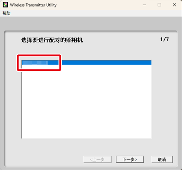 确认已列出步骤2中所示的照相机名称后,单击下一步。