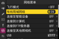 - Z9:在照相机网络菜单中将有线局域网络选为ON。