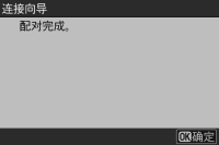 Wireless Transmitter Utility将自动为照相机和计算机配对。配对完成后,照相机和Wireless Transmitter Utility中将显示相应的信息;按下照相机上的OK按钮并在Wireless Transmitter Utility中单击下一步。