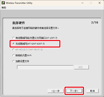 选择无线局域网 (WT-5/WT-6/WT-7)并单击下一步。