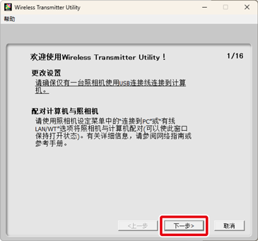 Wireless Transmitter Utility启动后,单击下一步。