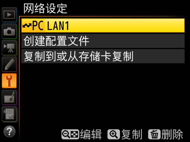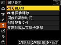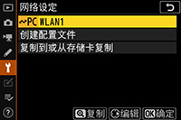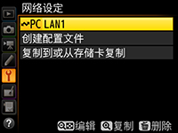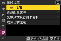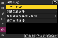 加亮显示一个配置文件,然后向右按下多重选择器返回有线LAN/WT菜单。等待照相机建立连接。