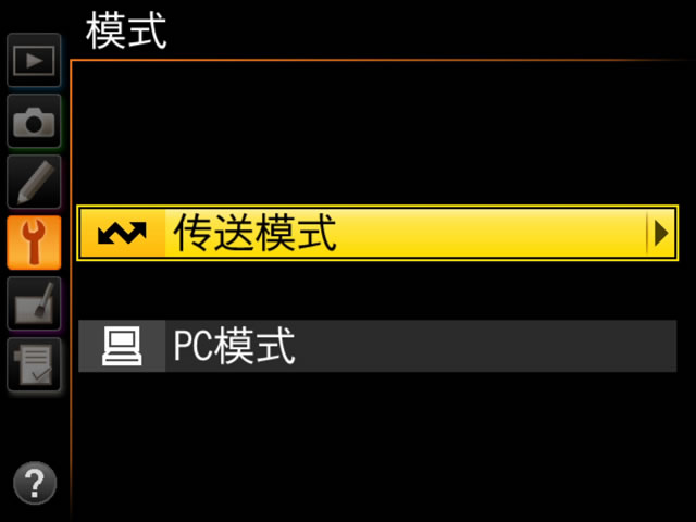 您可从传送模式和PC模式中进行选择。向右按下多重选择器显示网络配置文件列表。
