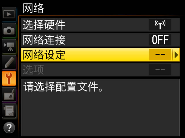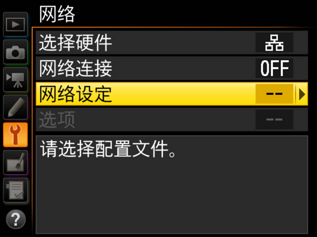 加亮显示网络设定,然后向右按下多重选择器显示网络配置文件列表。