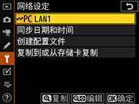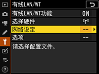在照相机设定菜单中选择有线LAN/WT>网络设定。
