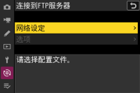 在照相机网络菜单中选择连接到FTP服务器>网络设定。