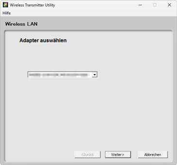 Folgen Sie den Bildschirmanweisungen, um eine Verbindung herzustellen, und starten Sie das Wireless Transmitter Utility. Wählen Sie, wenn Sie dazu aufgefordert werden, einen Wireless-LAN-Adapter aus dem Pulldown-Menü des Wireless Transmitter Utility.