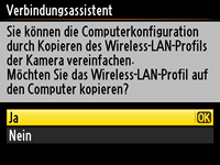 Diese Option steht nicht zur Verfügung, wenn Direkte Verbindung (Ad-hoc) mit dem Verbindungsassistent der Kamera gewählt wurde.