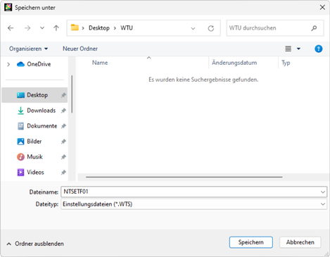 Klicken Sie bei Schritt 12 auf Einstellungen speichern, um Netzwerkprofile im Format »wts« oder »txt« zu speichern. Zum Laden von gespeicherten Profilen klicken Sie bei Schritt 3 auf Einstellungsdatei laden.