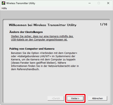 Klicken Sie auf Weiter, nachdem das Wireless Transmitter Utility gestartet ist.