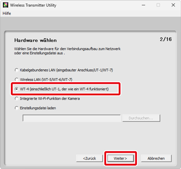 Wählen Sie WT-4 (einschließlich UT-1, der wie ein WT-4 funktioniert) aus und klicken Sie auf Weiter.