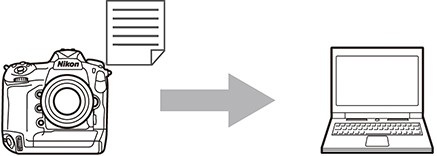 Wireless LAN profiles created on the camera can be copied to a computer. You may find this useful when creating new wireless networks for wireless transmitters. Note that if the computer is already connected to a network, the profile copied to the computer will overwrite the computer’s existing network settings.