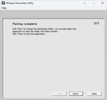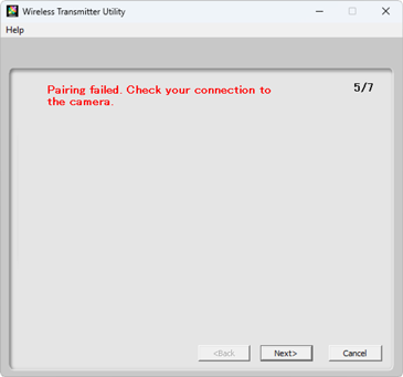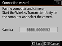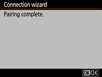 The Wireless Transmitter Utility will pair the camera and computer automatically. When pairing is complete, the camera and Wireless Transmitter Utility will display messages to that effect; press the OK button on the camera and click Next in the Wireless Transmitter Utility.