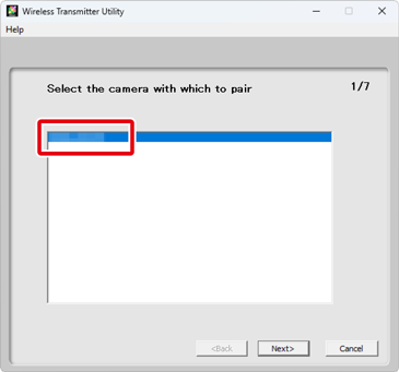 After confirming that the camera name shown in Step 1 is listed, click Next.