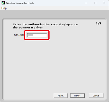 Enter the authentication code in the Wireless Transmitter Utility and click Next.