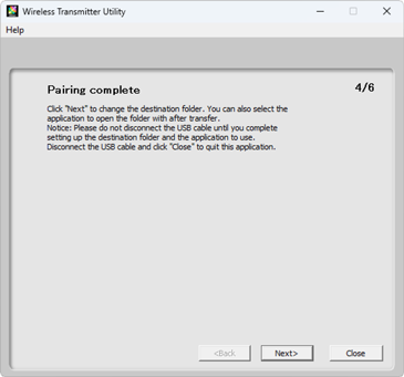 Follow the on-screen instructions to establish a connection and launch the Wireless Transmitter Utility. The Wireless Transmitter Utility will automatically pair the camera with the computer.