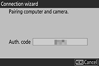 The Wireless Transmitter Utility will pair the camera and computer automatically. When pairing is complete, the camera and Wireless Transmitter Utility will display messages to that effect; press the OK button on the camera and click Next in the Wireless Transmitter Utility.